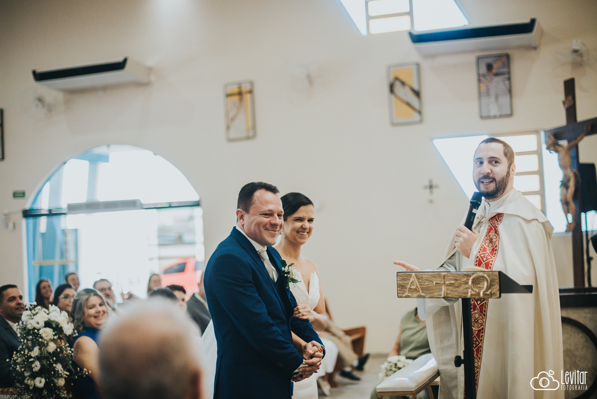 A cerimônia foi na Paróquia de Nossa Senhora Aparecida, em Cachoeira Paulista — um lugar especial para os dois. A entrada foi de arrepiar: Giulliano chegou com a Clara, e a Rose foi conduzida pelo filho, Antônio. E como se já não fosse emocionante o bastante, a Clara emocionou a todos cantando o salmo durante a celebração. O momento das alianças também foi puro sentimento — levadas pelos dois filhos do casal, simbolizando toda a união e amor daquela família.