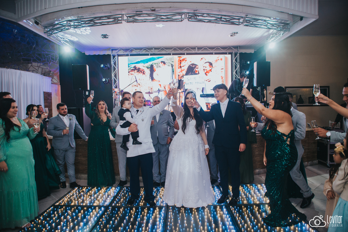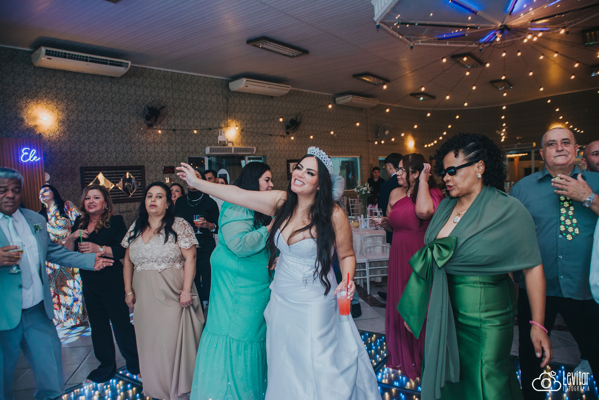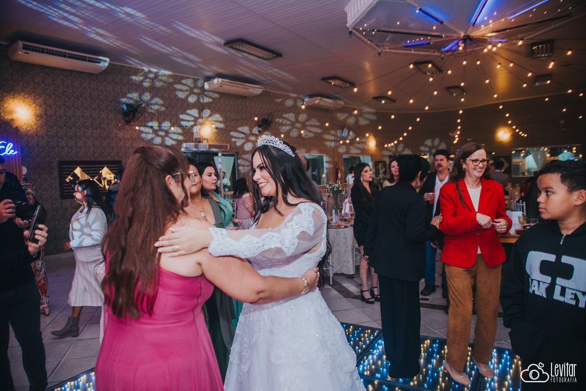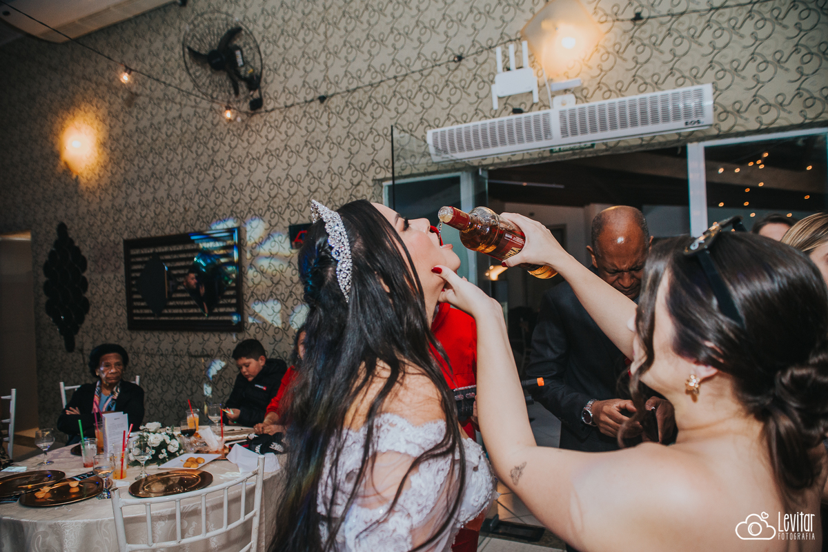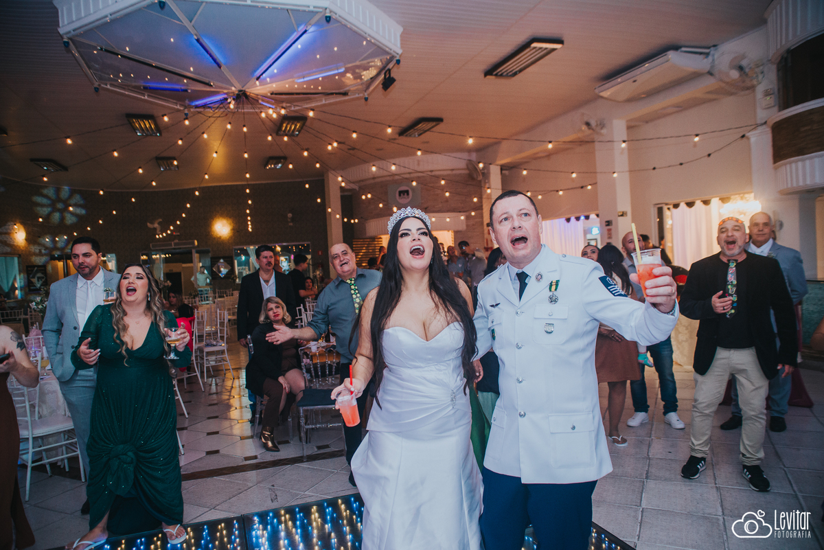 Depois da cerimônia, a festa aconteceu no Nosso Salão Vip, um espaço super aconchegante e bem preparado para receber todos os convidados com conforto e estilo. O buffet? Foi assinado pelo incrível Buffet Lazarini, que encantou com pratos deliciosos e um atendimento impecável.