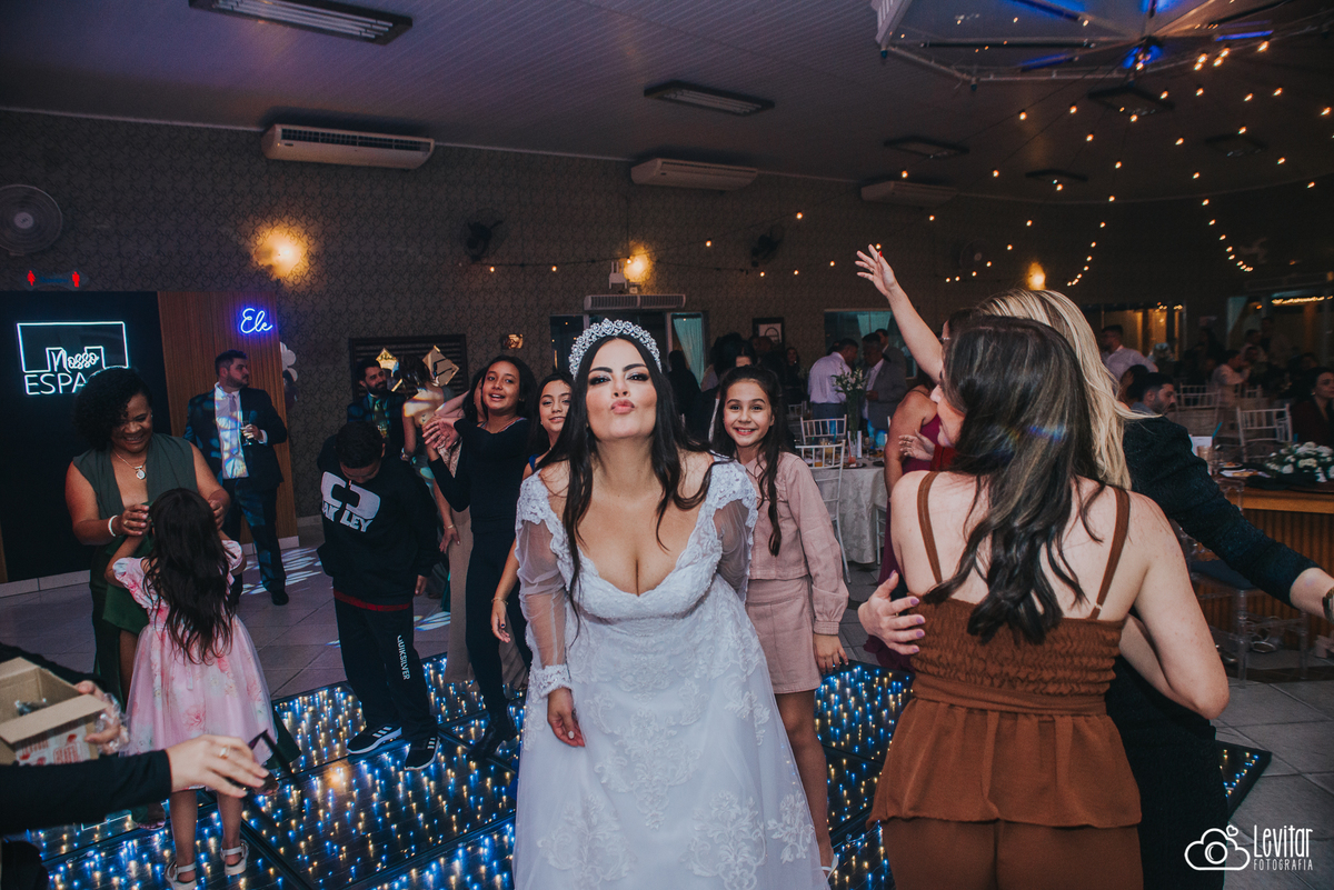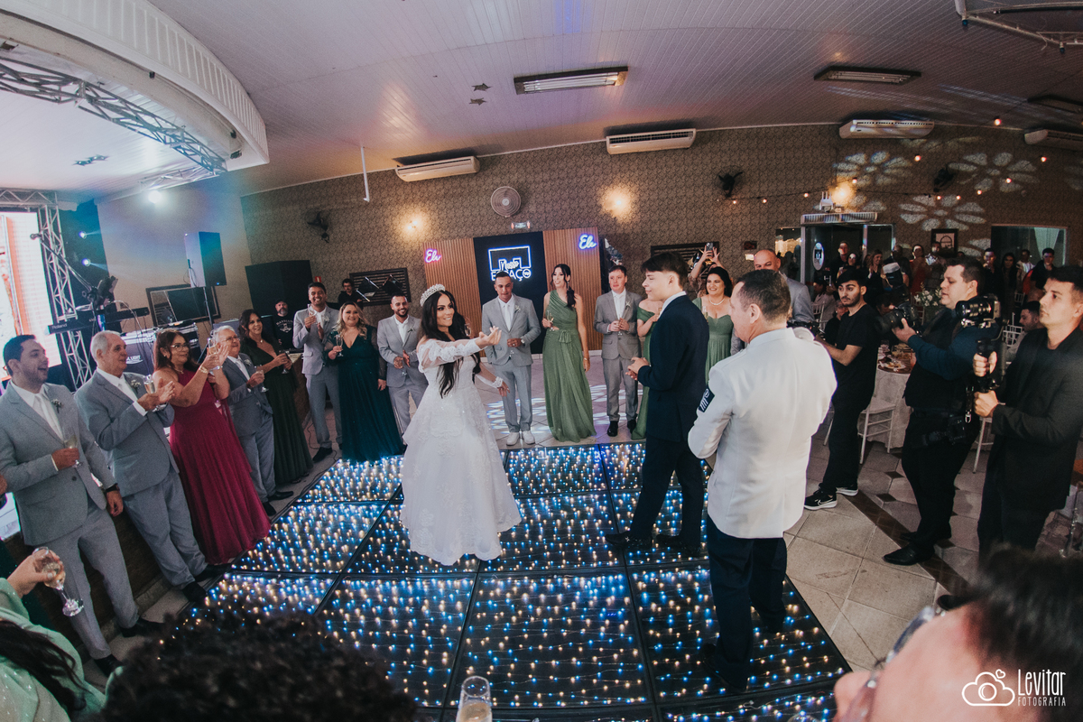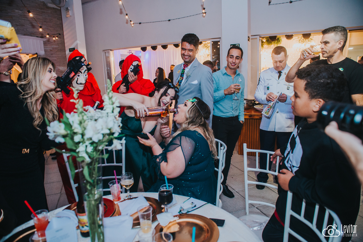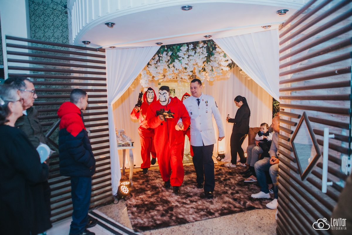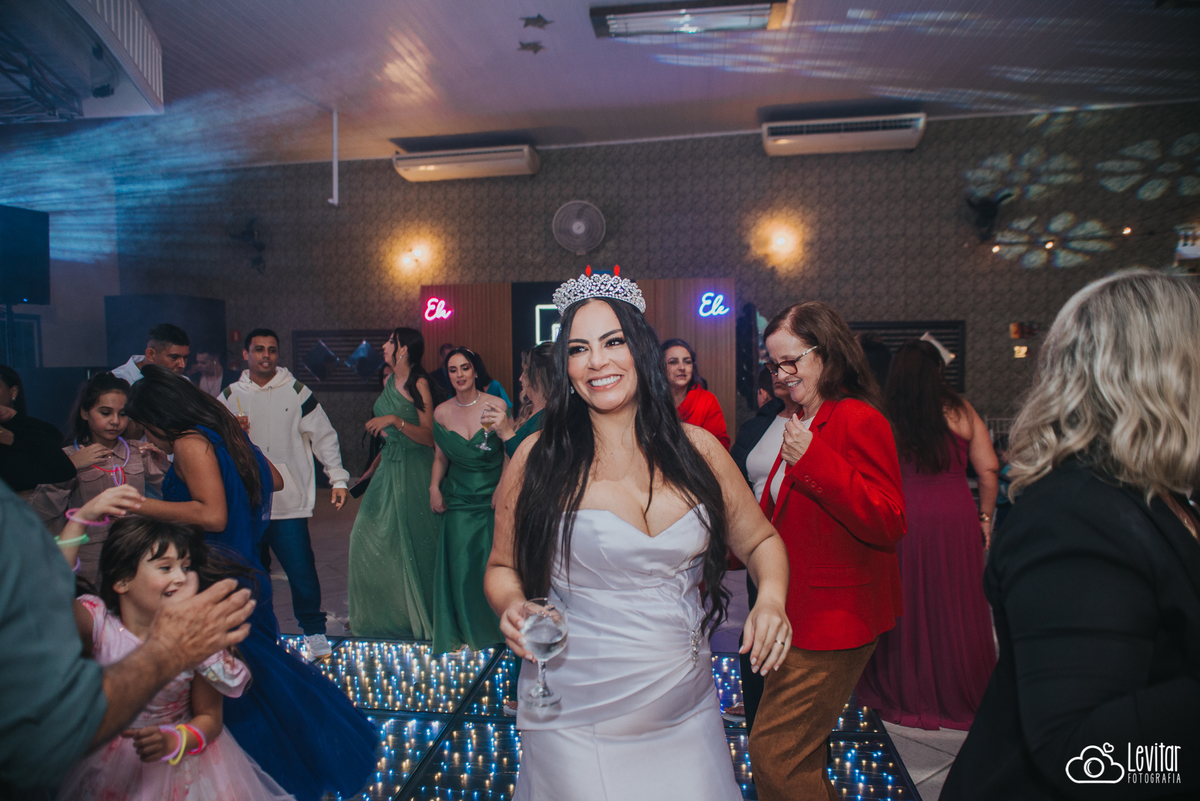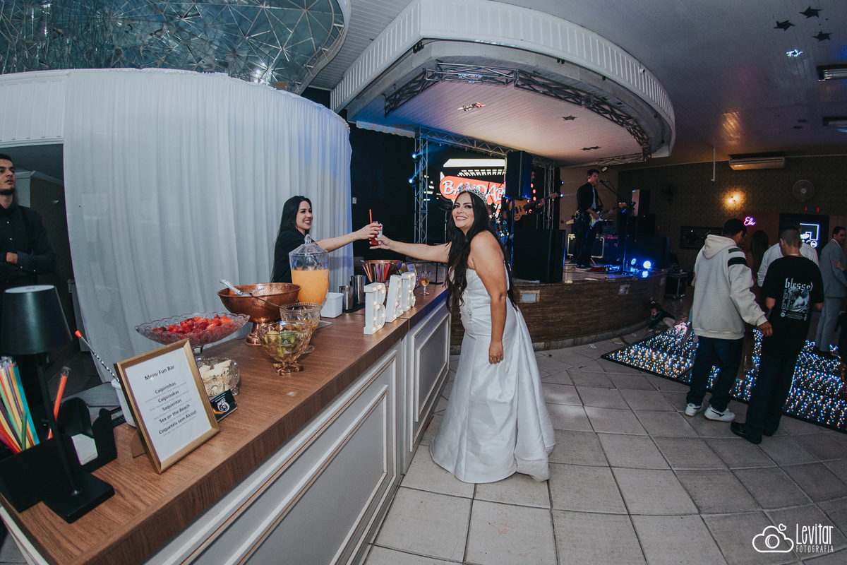 Depois da cerimônia, a festa aconteceu no Nosso Salão Vip, um espaço super aconchegante e bem preparado para receber todos os convidados com conforto e estilo. O buffet? Foi assinado pelo incrível Buffet Lazarini, que encantou com pratos deliciosos e um atendimento impecável.