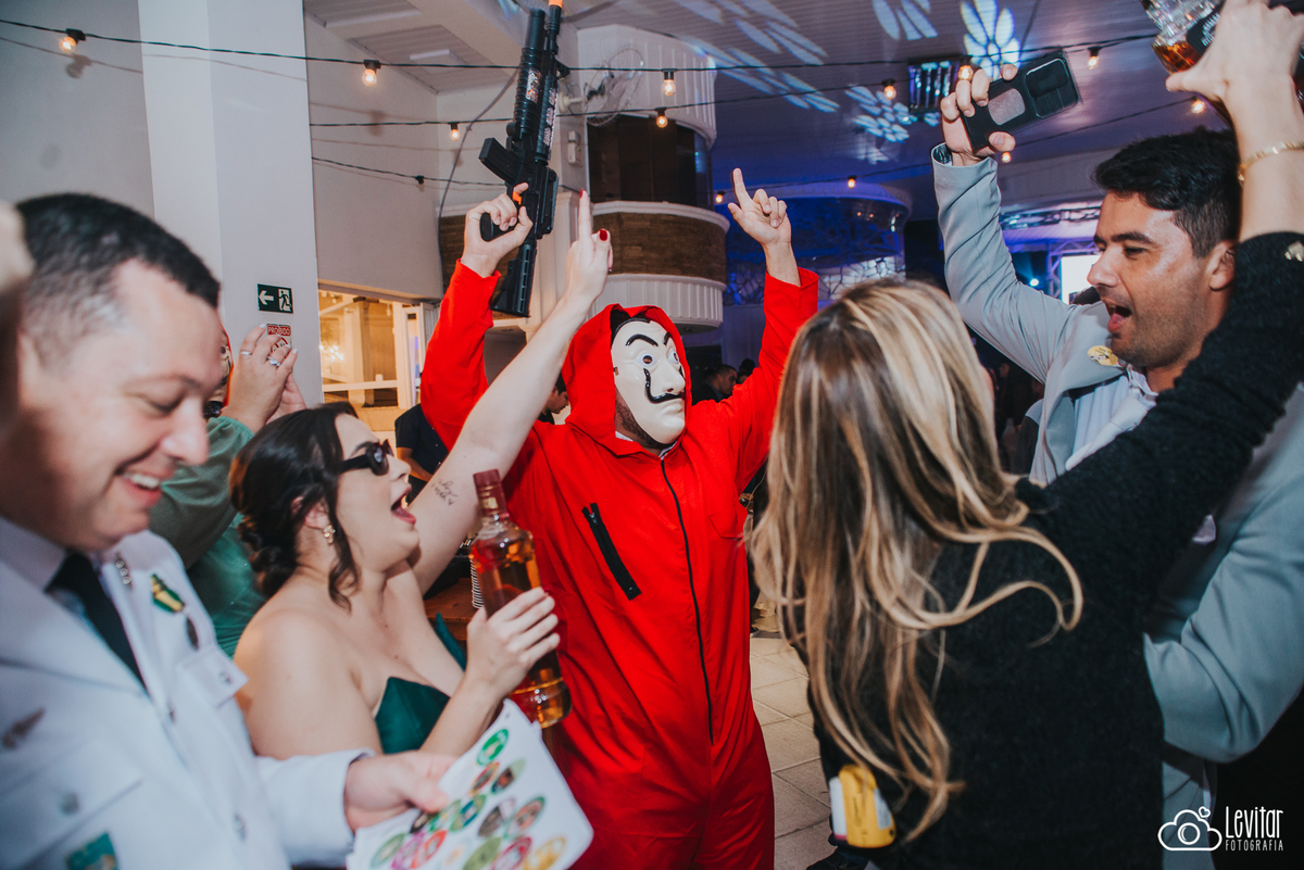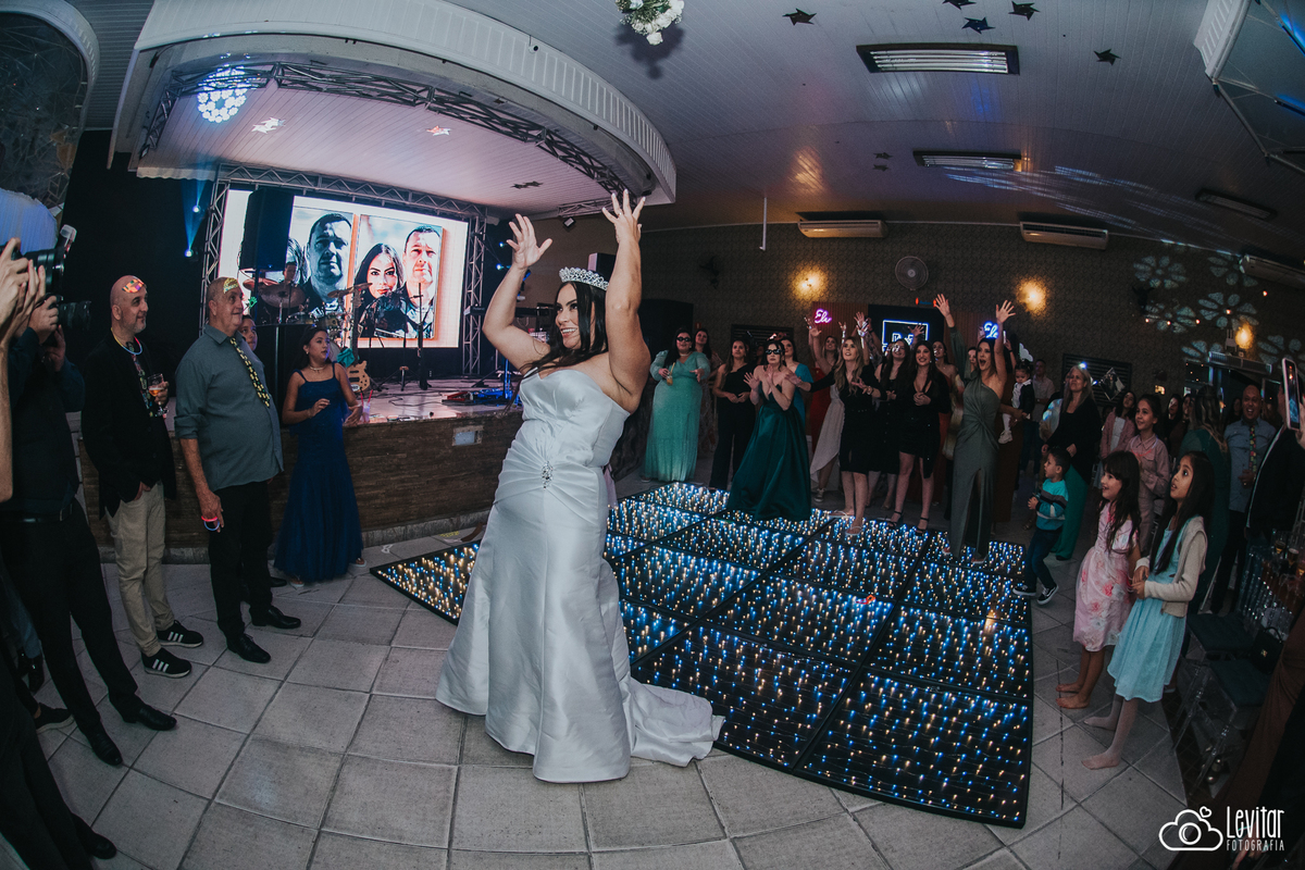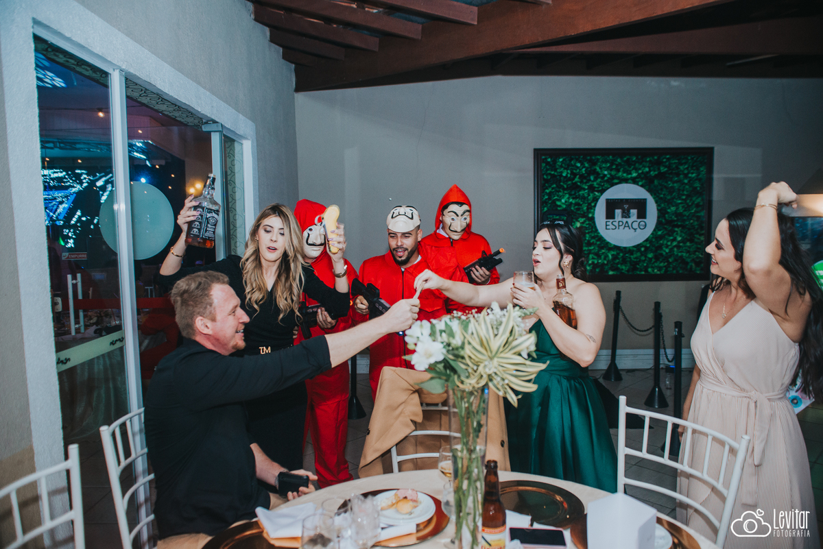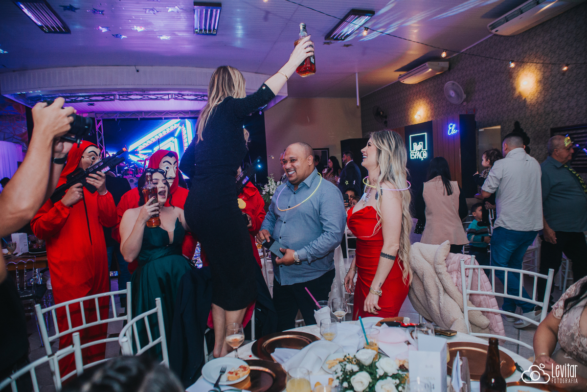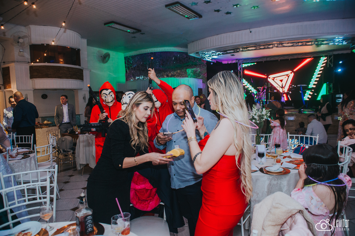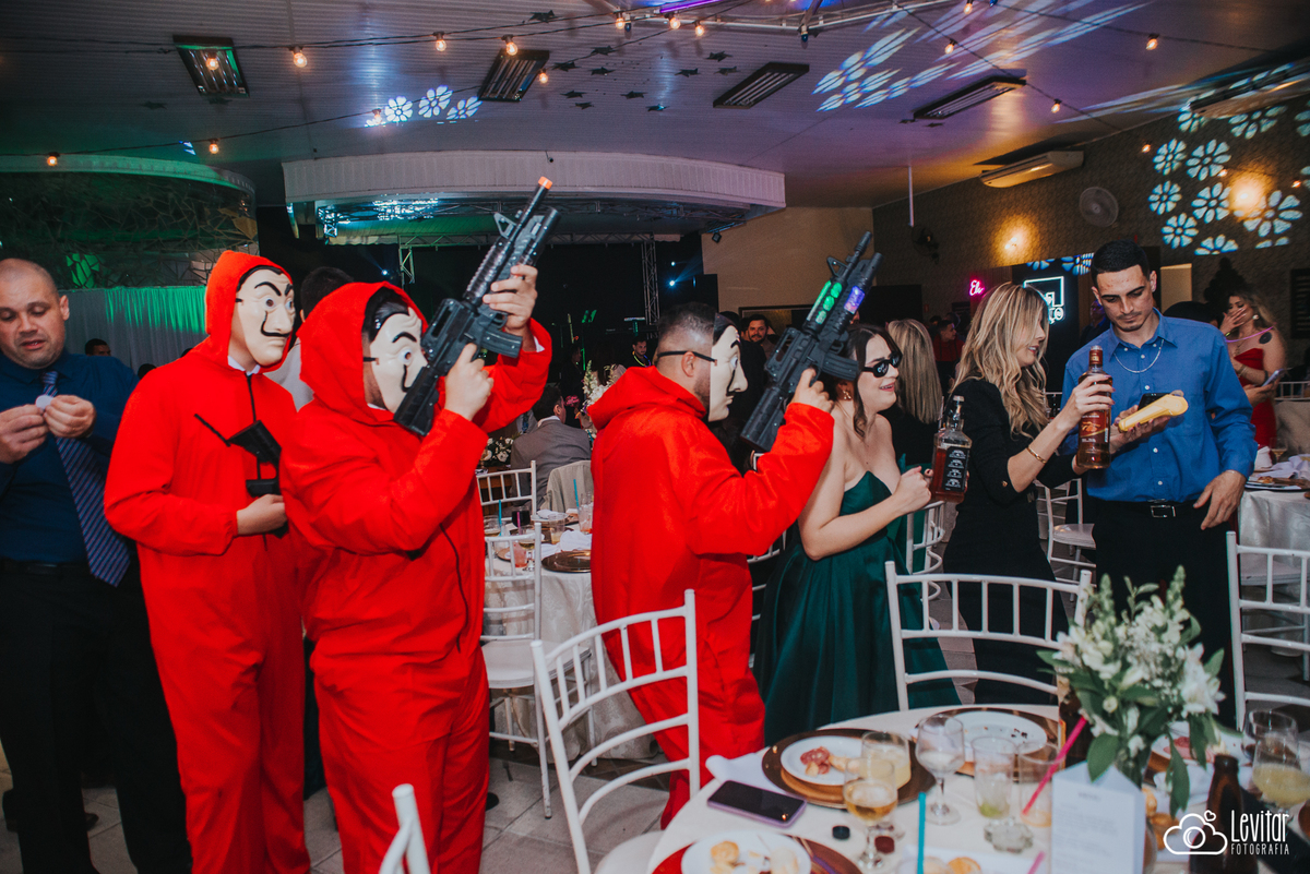 Depois da cerimônia, a festa aconteceu no Nosso Salão Vip, um espaço super aconchegante e bem preparado para receber todos os convidados com conforto e estilo. O buffet? Foi assinado pelo incrível Buffet Lazarini, que encantou com pratos deliciosos e um atendimento impecável.