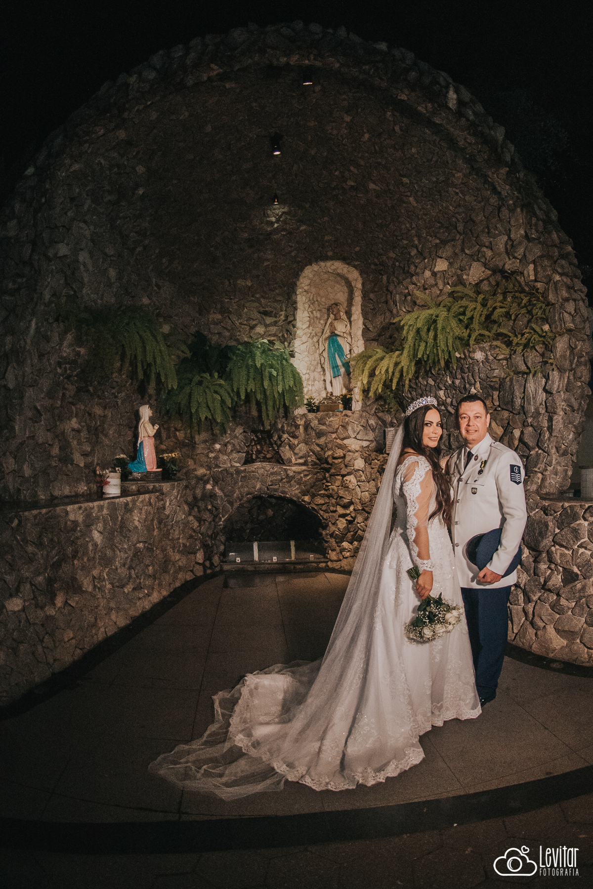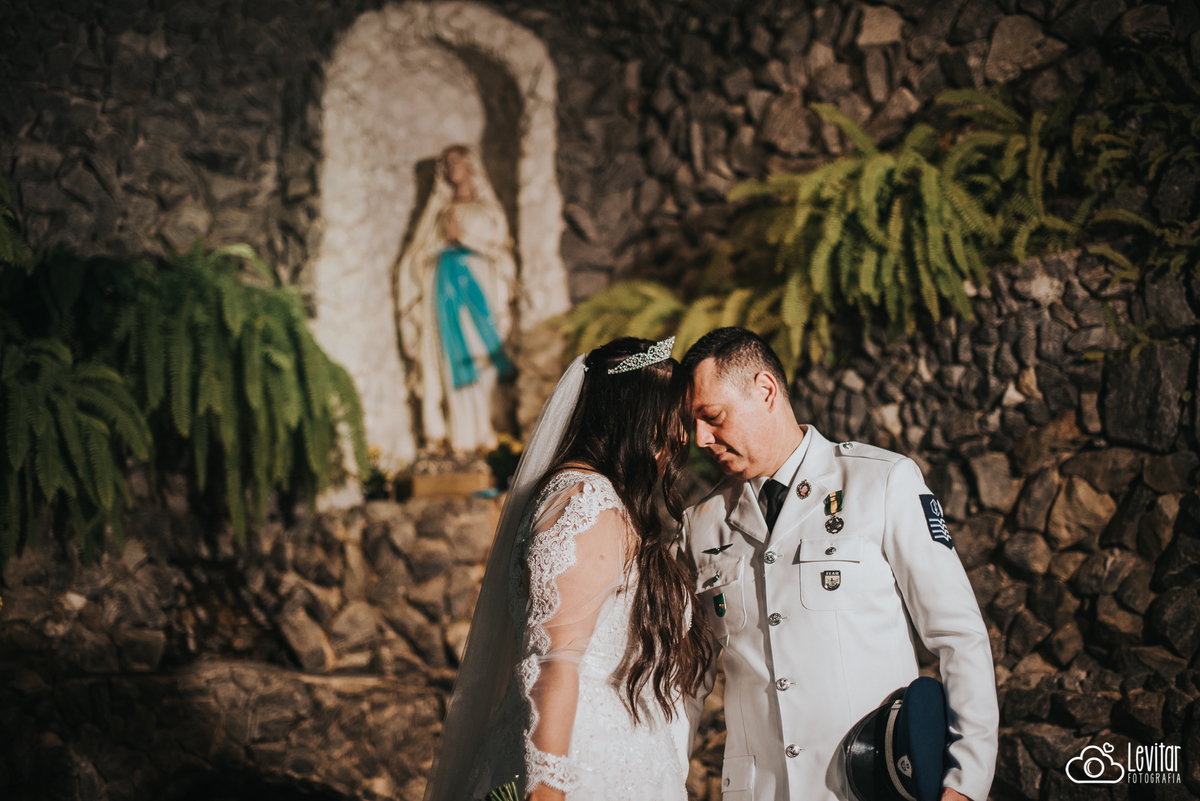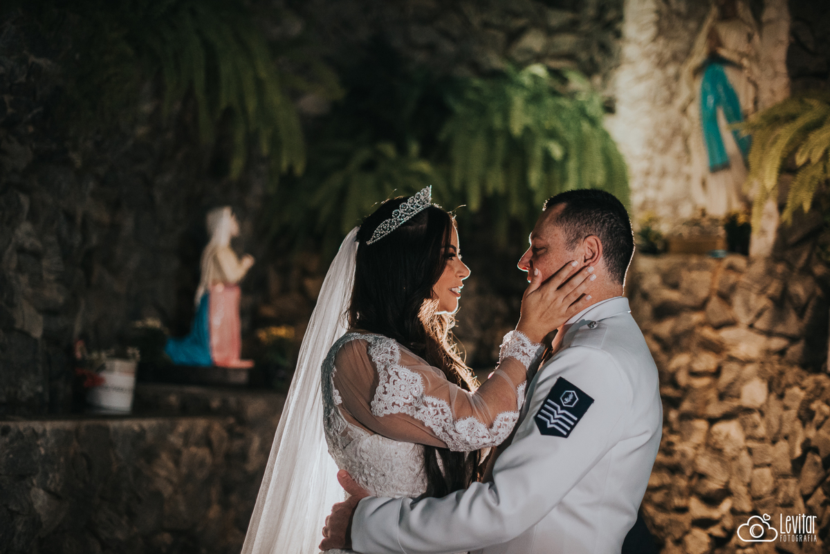 Eles escolheram celebrar o amor em um lugar cheio de espiritualidade e emoção — a Casa do Puríssimo Coração de Maria, com uma bênção especial na Gruta de Nossa Senhora de Lourdes. Foi uma cerimônia linda, leve e tocante, com uma energia que contagiou todos os presentes.