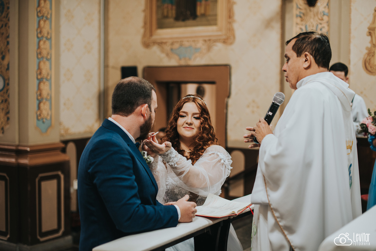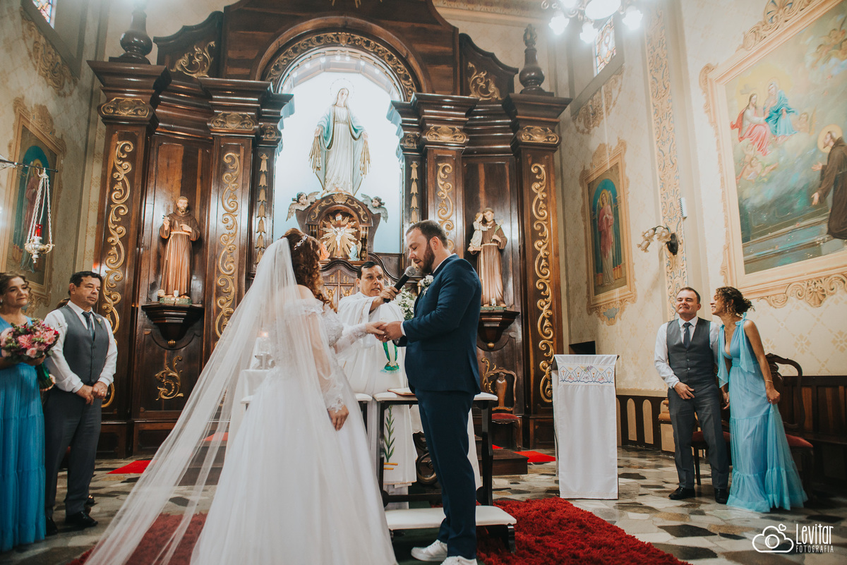 A cerimônia de casamento deles aconteceu no histórico Convento Nossa Senhora das Graças, em Guaratinguetá. Esse local singular adicionou um toque de beleza e espiritualidade à celebração. Registramos cada momento emocionante, desde a entrada da noiva radiante até os votos sinceros trocados pelo casal.