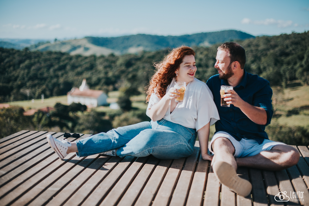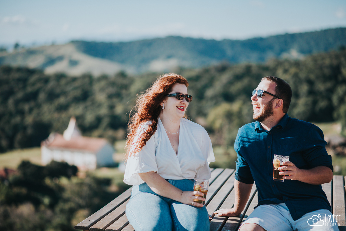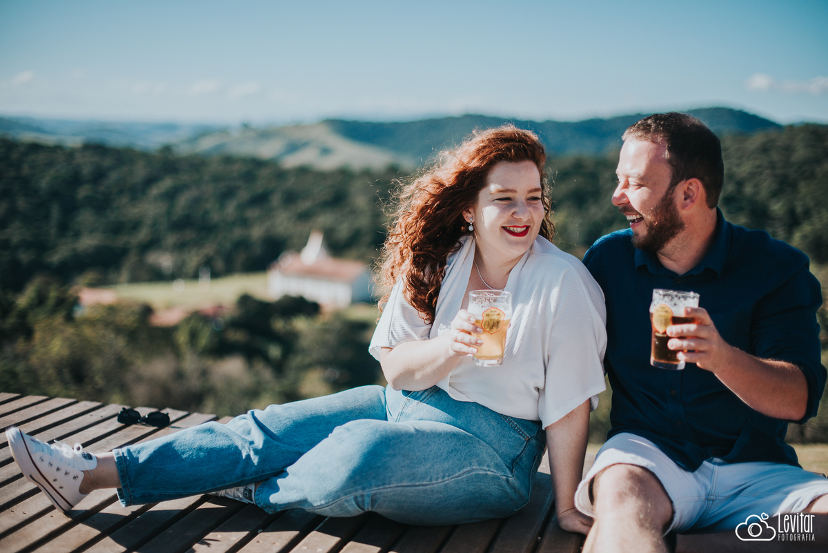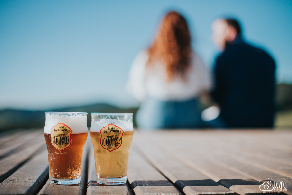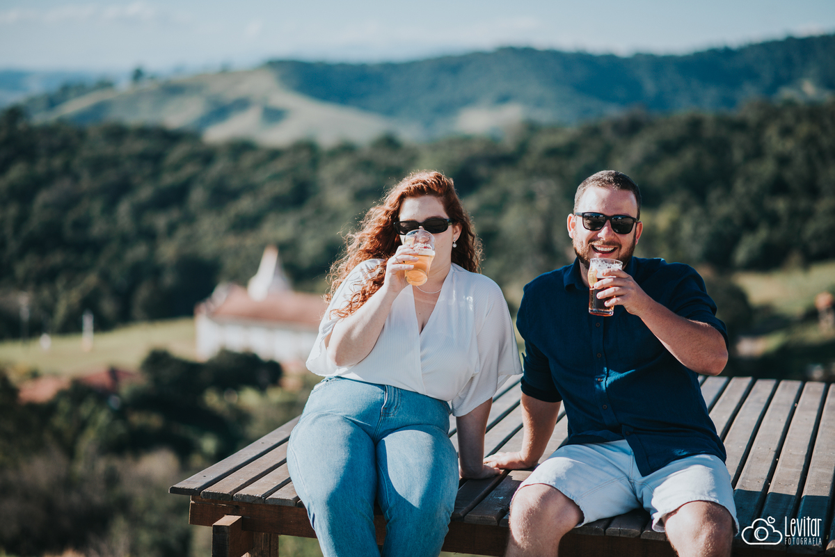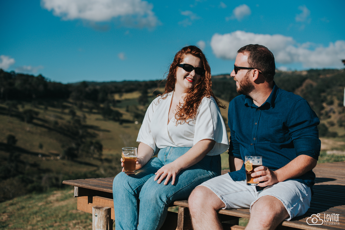 Entre paisagens encantadoras e jardins bem cuidados, brindaram com copos de cerveja, que se tornaram um elemento marcante e divertido nas fotos. Capturamos sorrisos genuínos, olhares apaixonados e gestos espontâneos, revelando a personalidade única desse casal incrível.