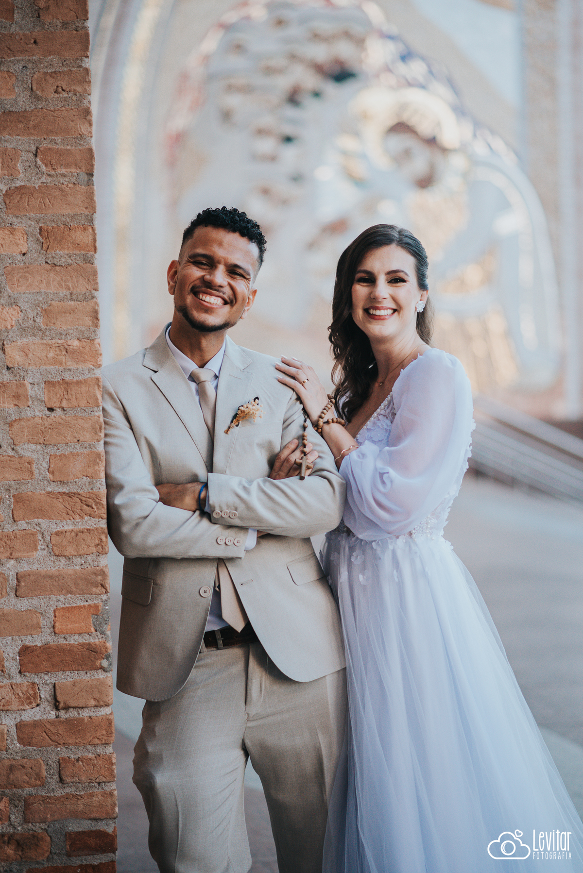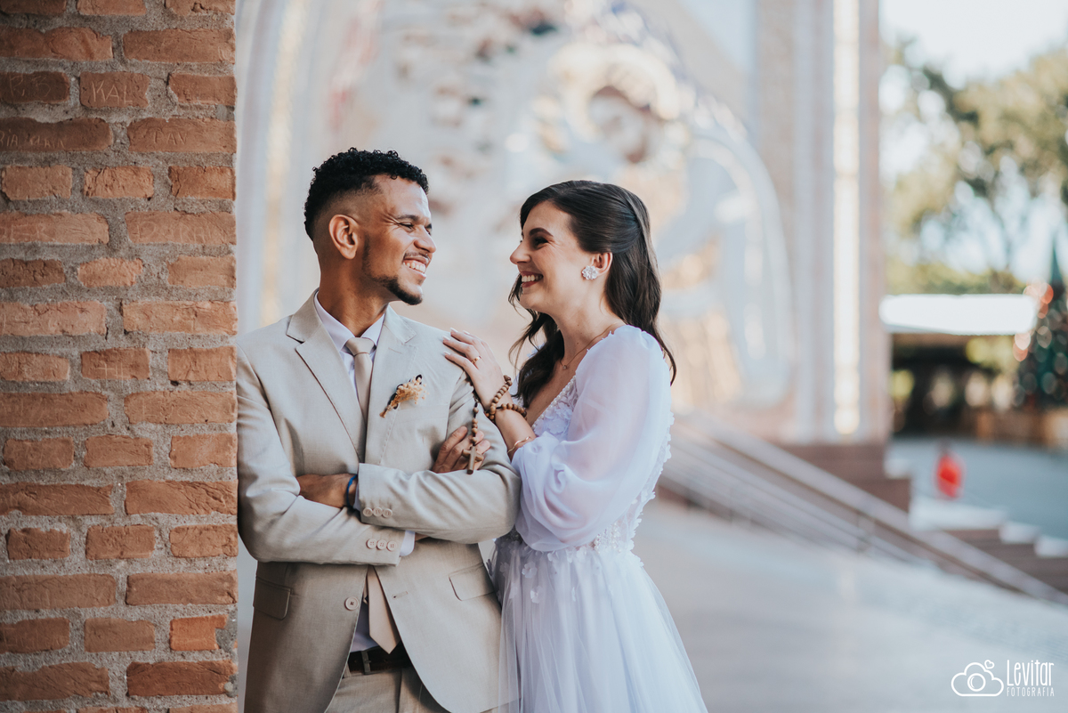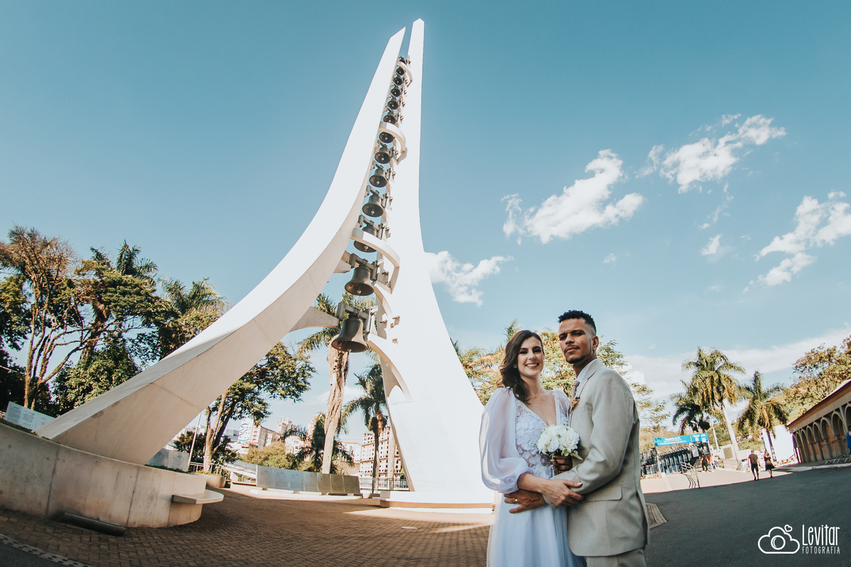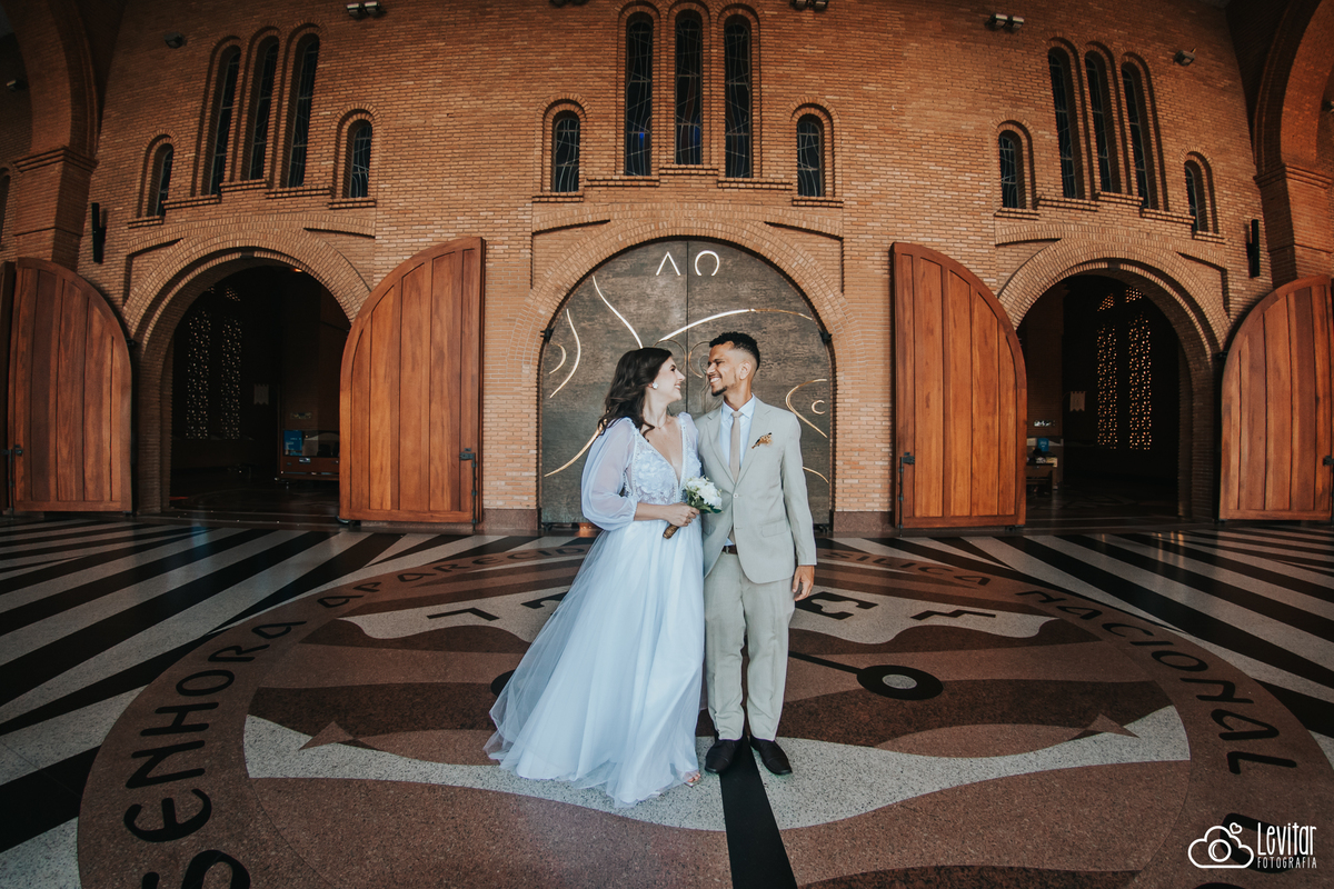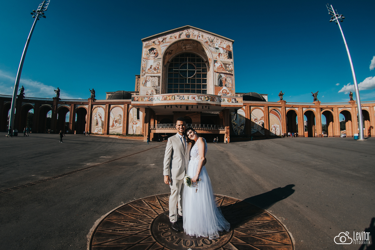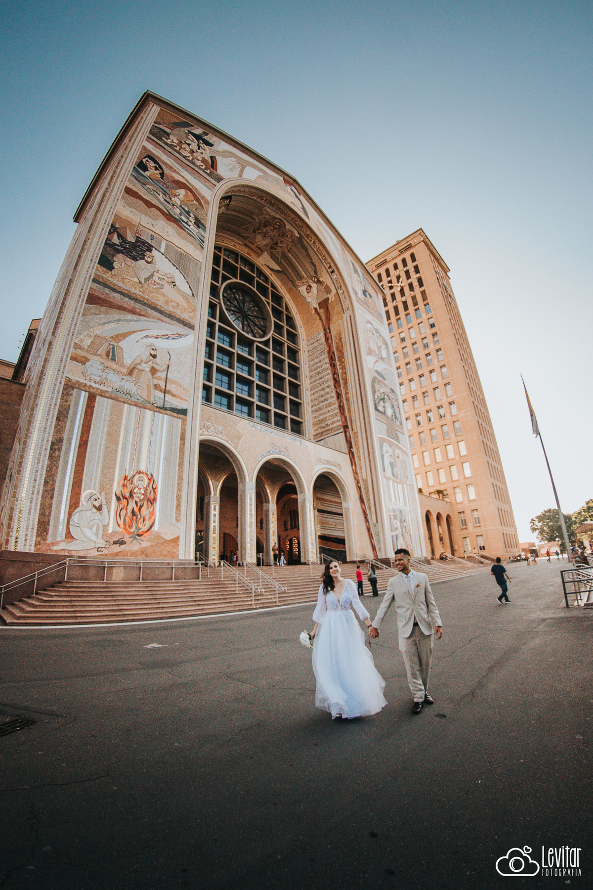 Após a cerimônia, realizamos um mini ensaio fotográfico nos principais pontos do Santuário Nacional de Aparecida, eternizando a alegria do casal em cenários que refletem a grandiosidade da fé e a beleza do local. Entre os lugares escolhidos para as fotos, como Capela das Velas, Nicho de Nossa Senhora Aparecida, e a fachada Sul.