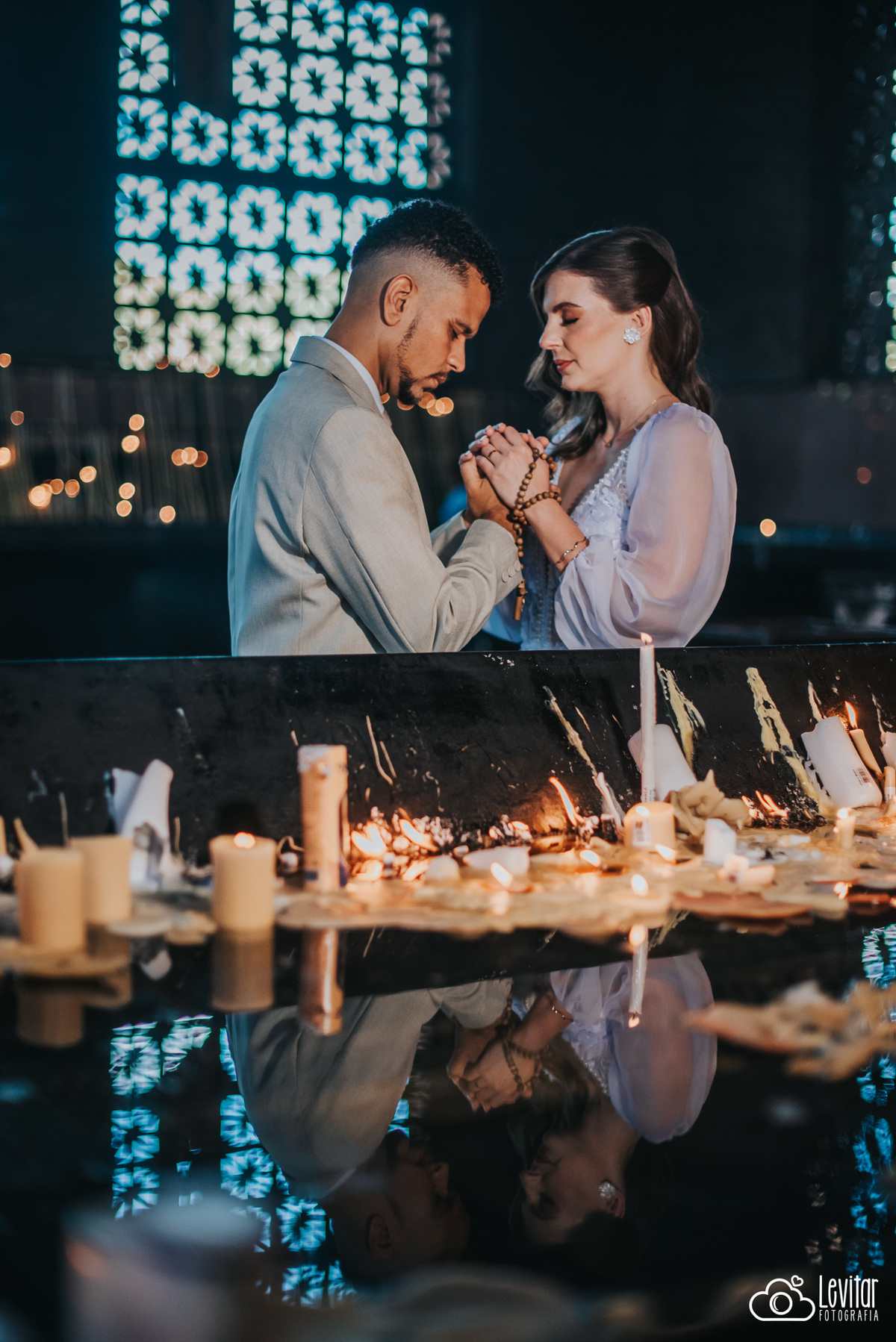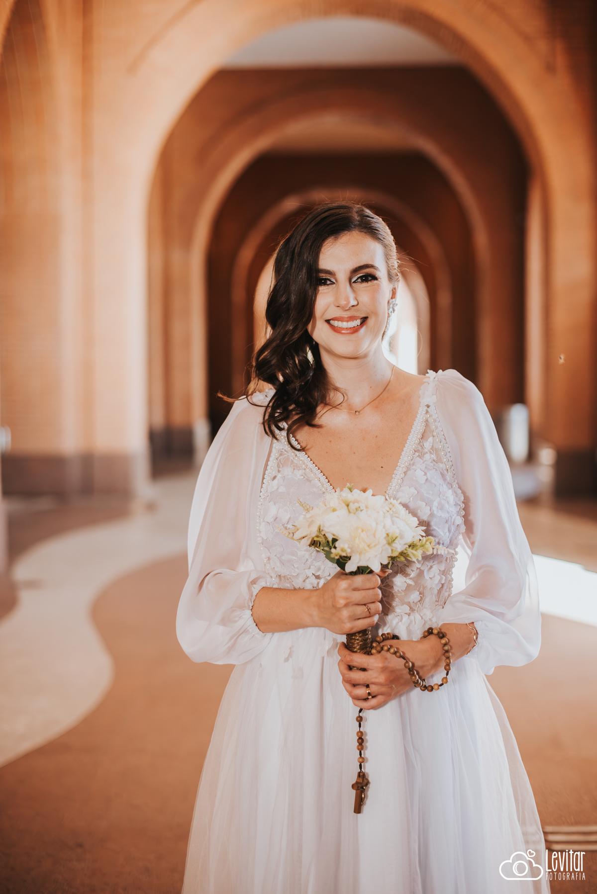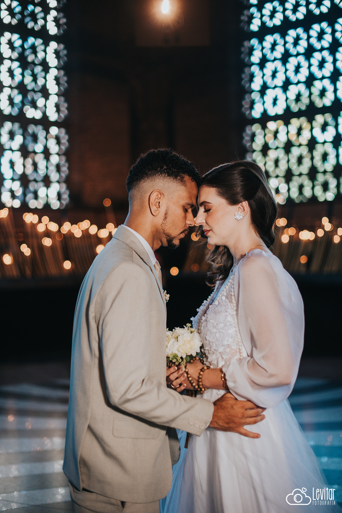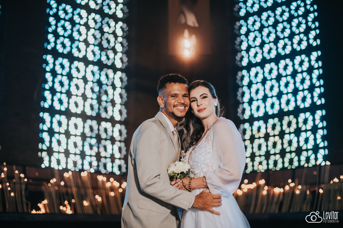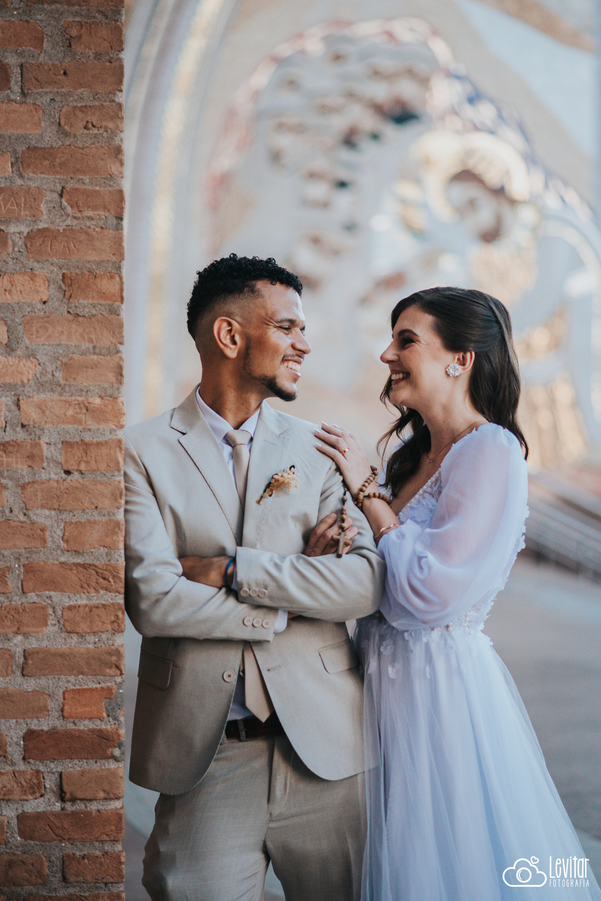 Após a cerimônia, realizamos um mini ensaio fotográfico nos principais pontos do Santuário Nacional de Aparecida, eternizando a alegria do casal em cenários que refletem a grandiosidade da fé e a beleza do local. Entre os lugares escolhidos para as fotos, como Capela das Velas, Nicho de Nossa Senhora Aparecida, e a fachada Sul.